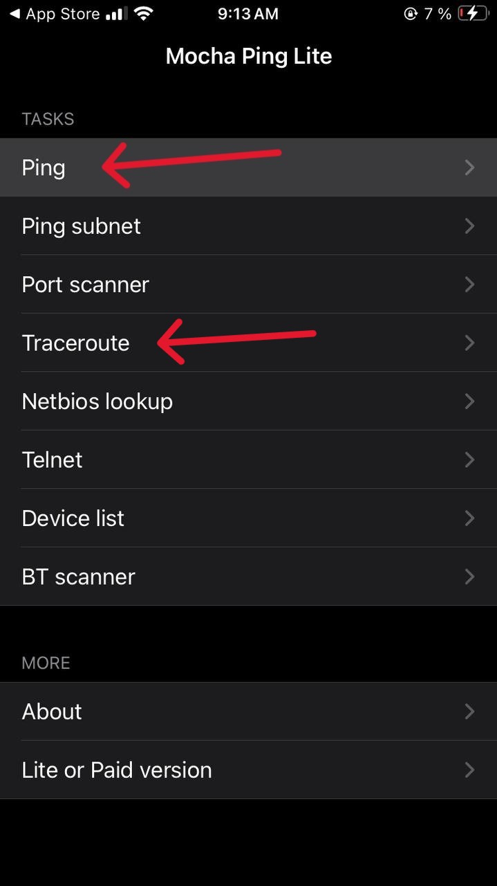 - Для команды ping выберите тип пакета (IPv4/IPv6).