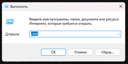 Нажмите Win + R, введите cmd, нажмите Enter.