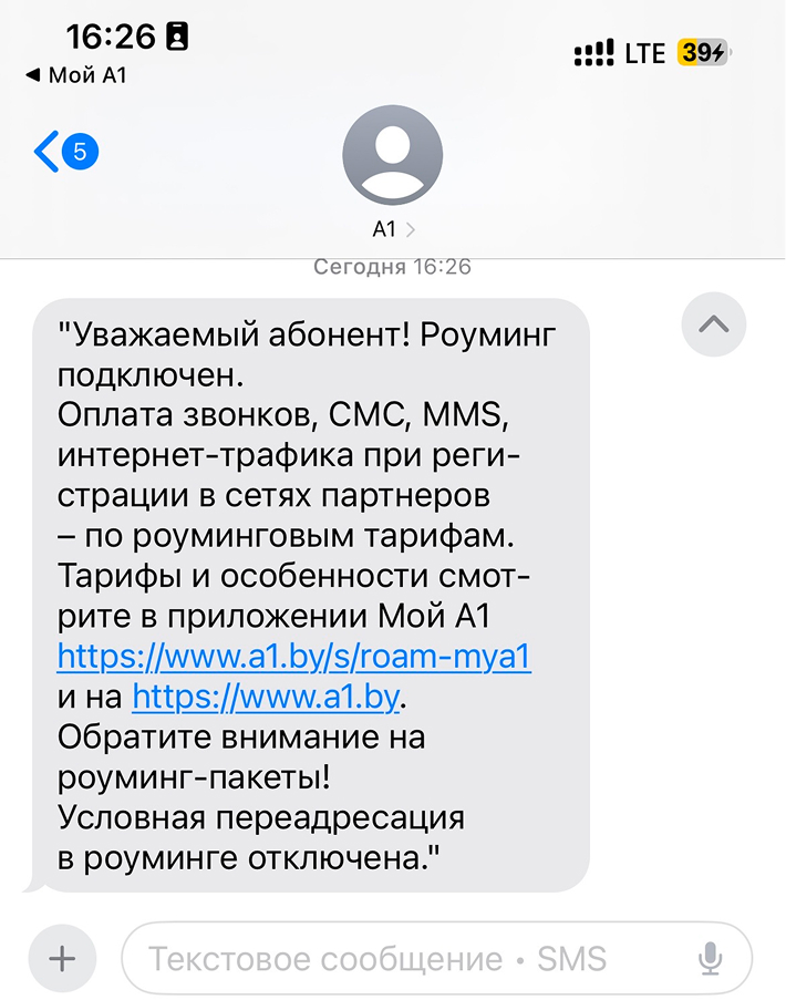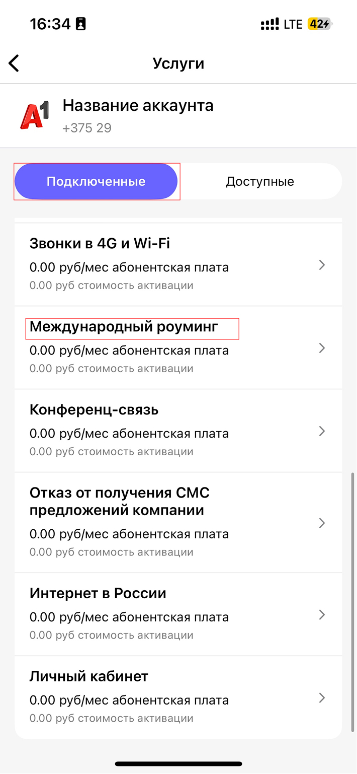 Роуминг подключается в приложении Мой А1 или Личном кабинете.Если клиент (организация) установил ограничение на управление услугой через системы самообслуживания: