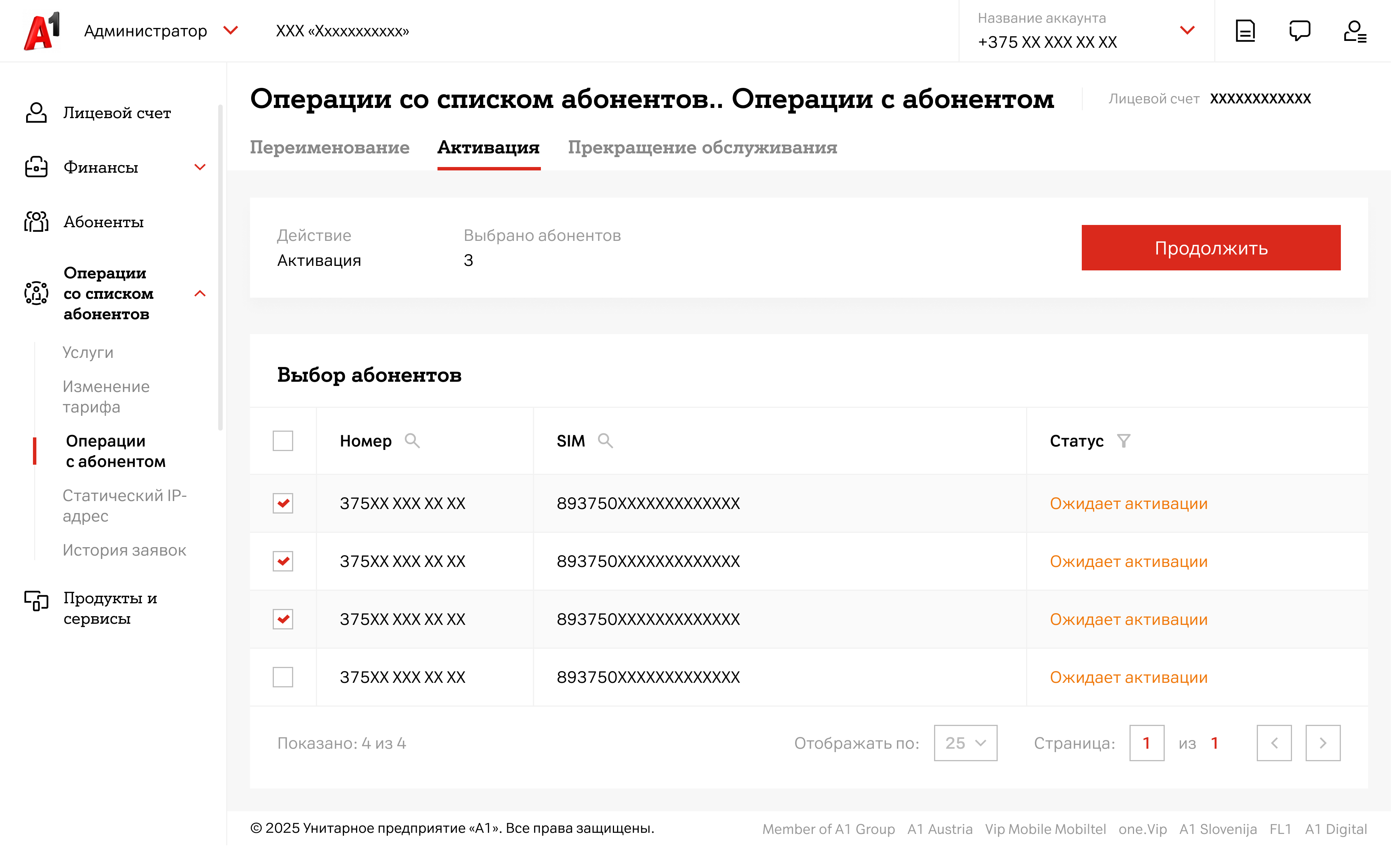 - Во вкладке «Активация» выберите абонентов, которых необходимо активировать