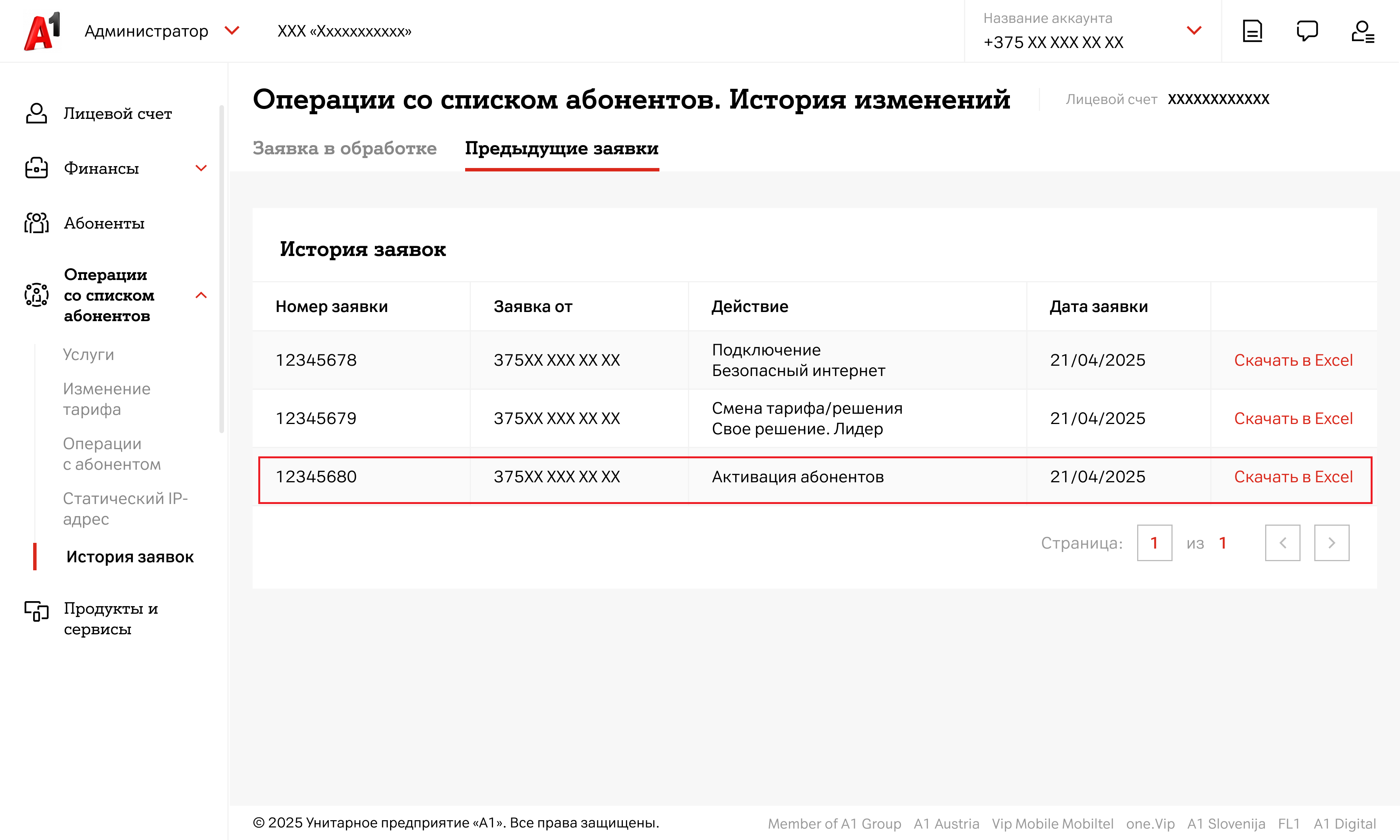 Для активации списка абонентов:- В левом меню в блоке «Операции со списком абонентов» выберите раздел «Операции с абонентом»