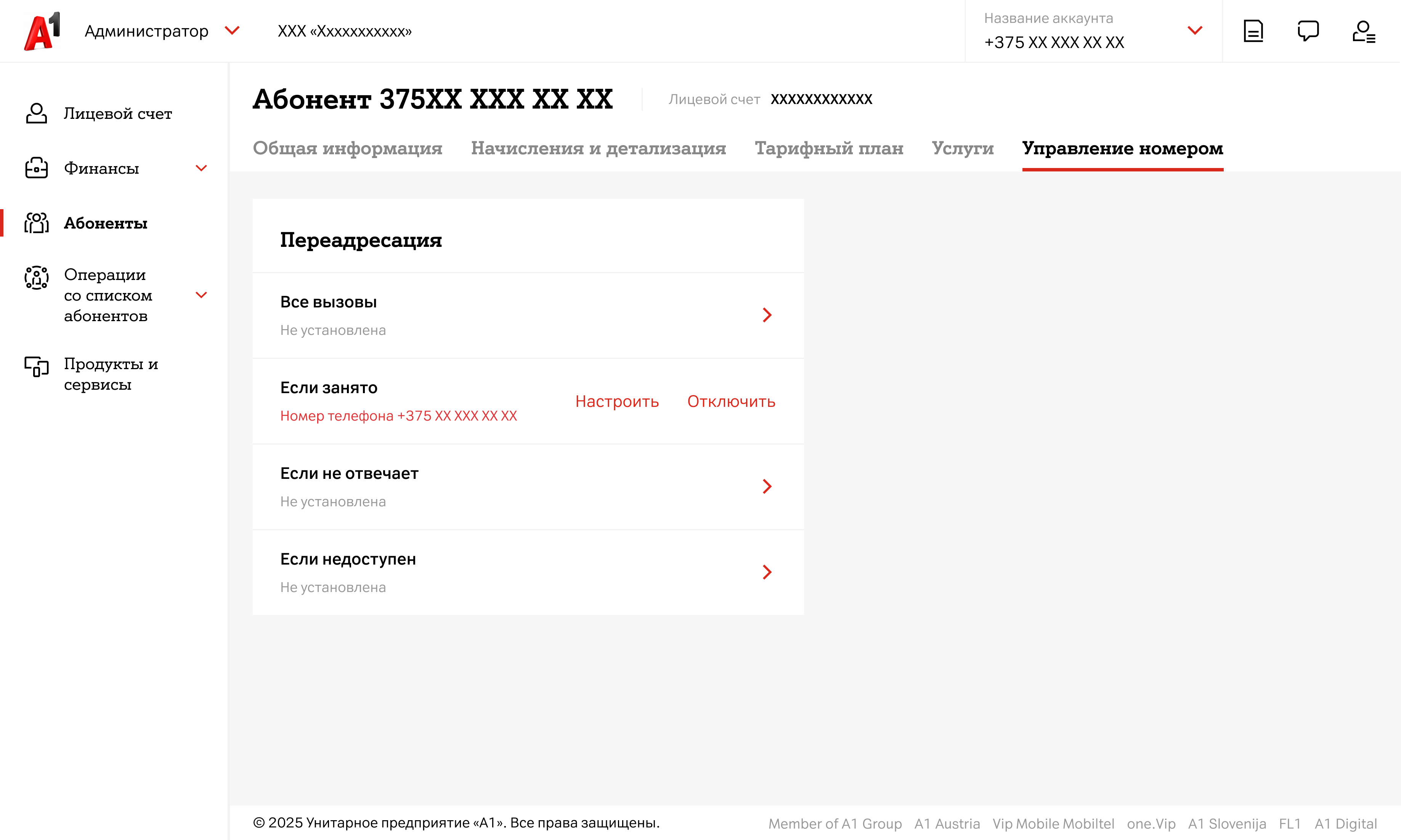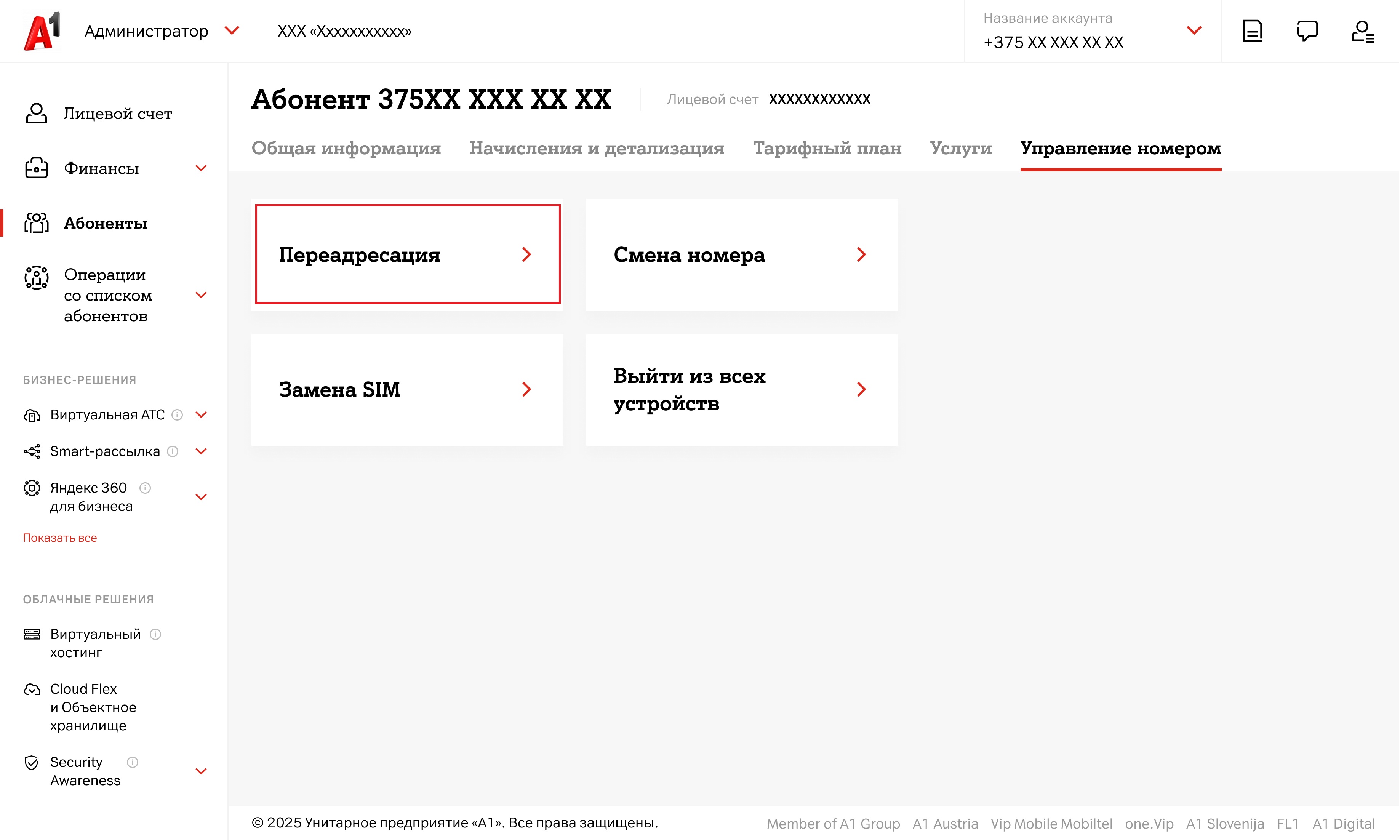 Для настройки переадресации:- В левом меню выберите блок «Абоненты»