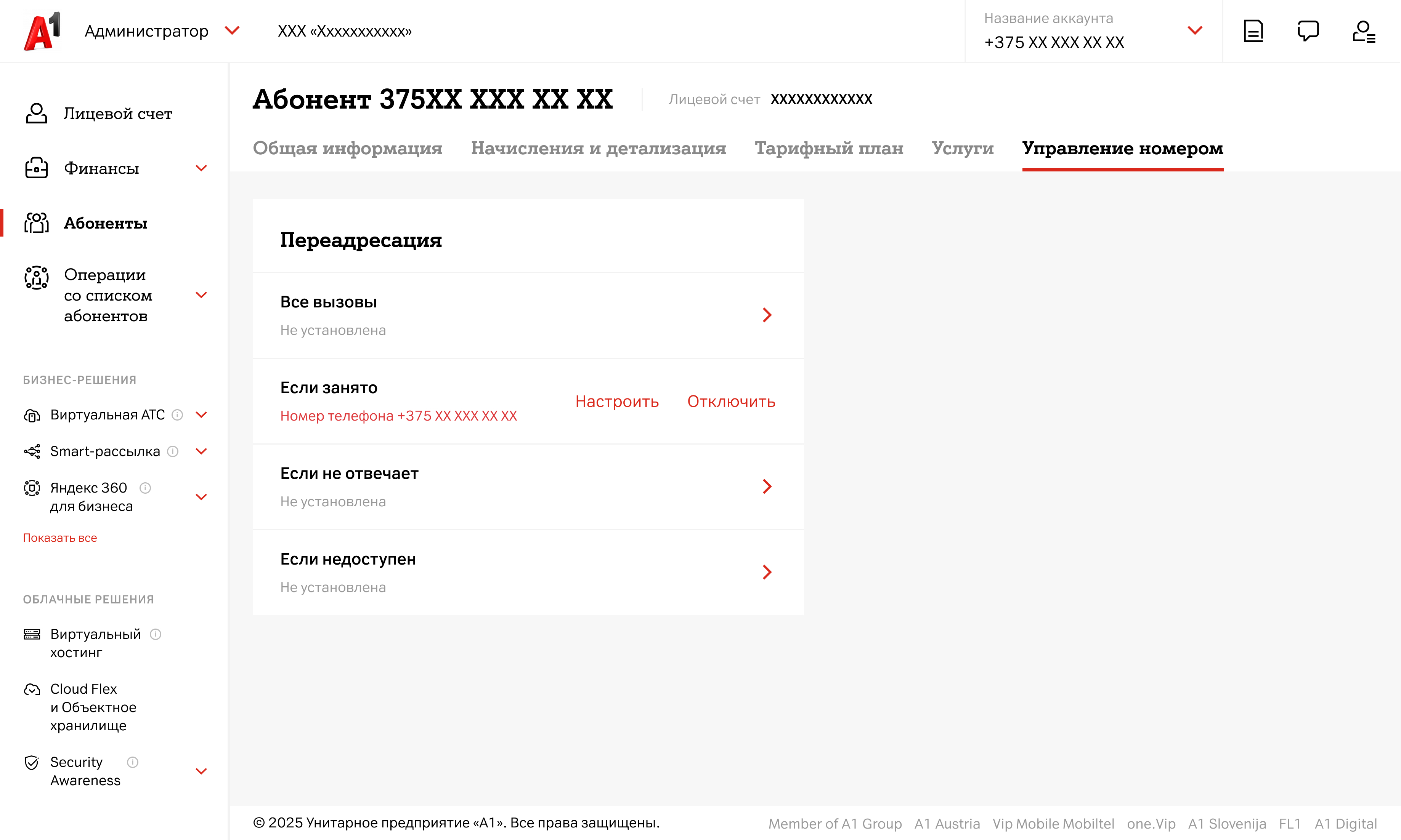 Для настройки переадресации:- В левом меню выберите блок «Абоненты»