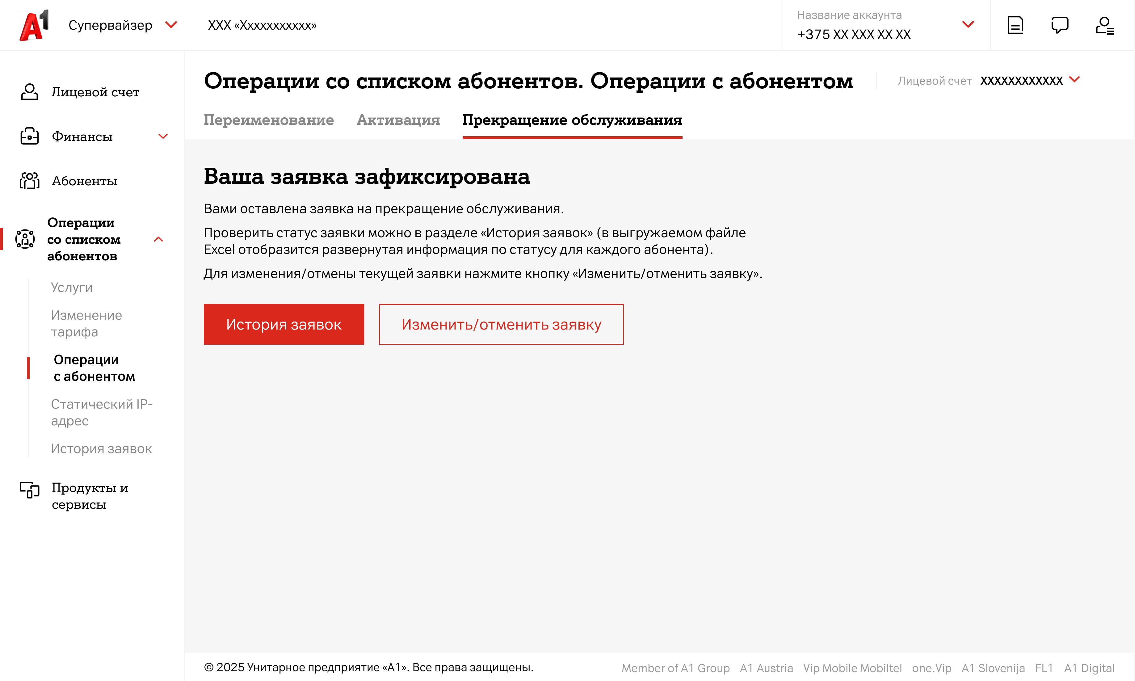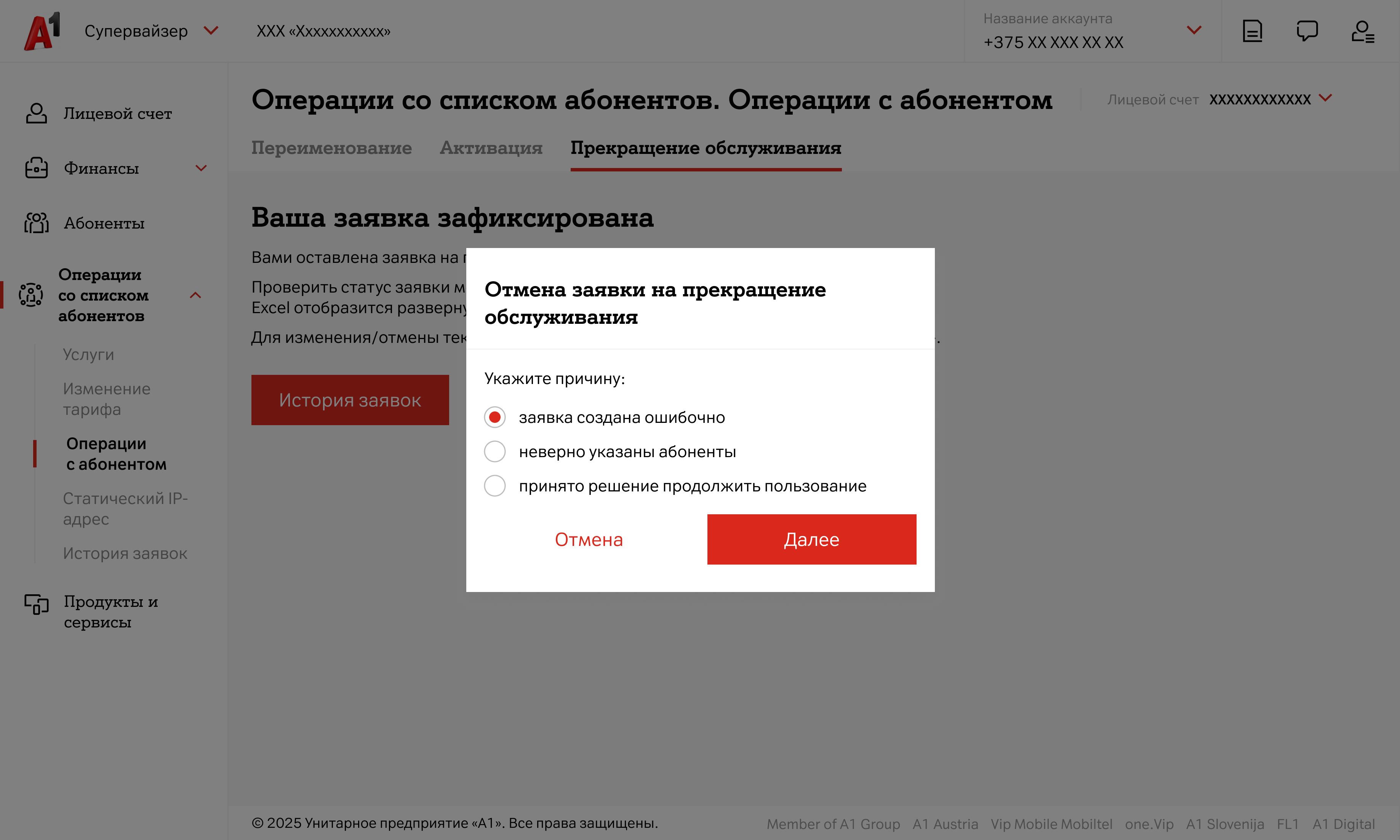 Как отменить заявку на прекращение обслуживания по абонентам?