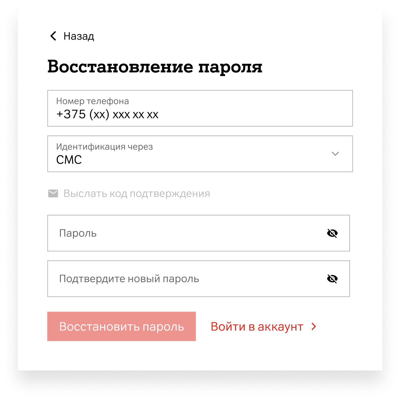 - Нажмите кнопку «Восстановить пароль»