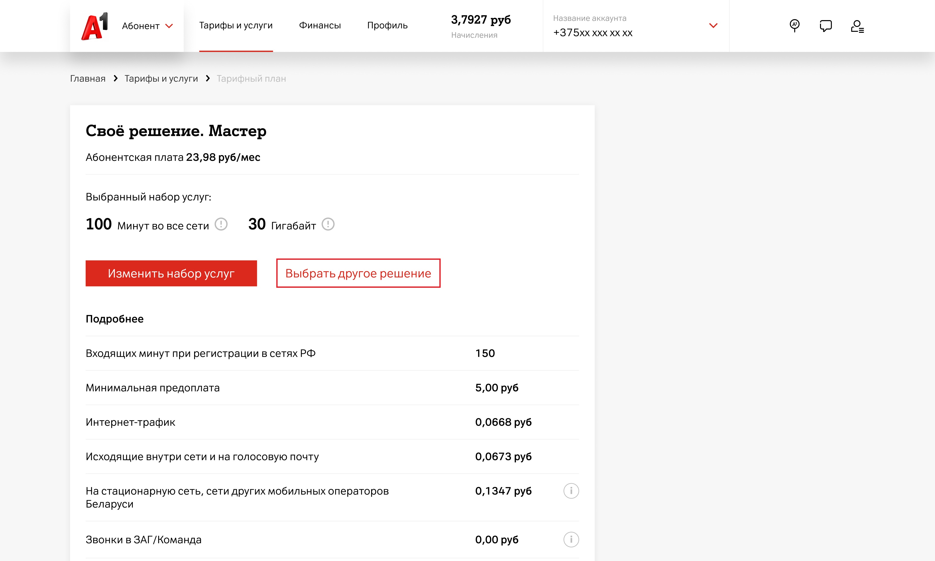 - Перейдите в блок «Тарифный план»