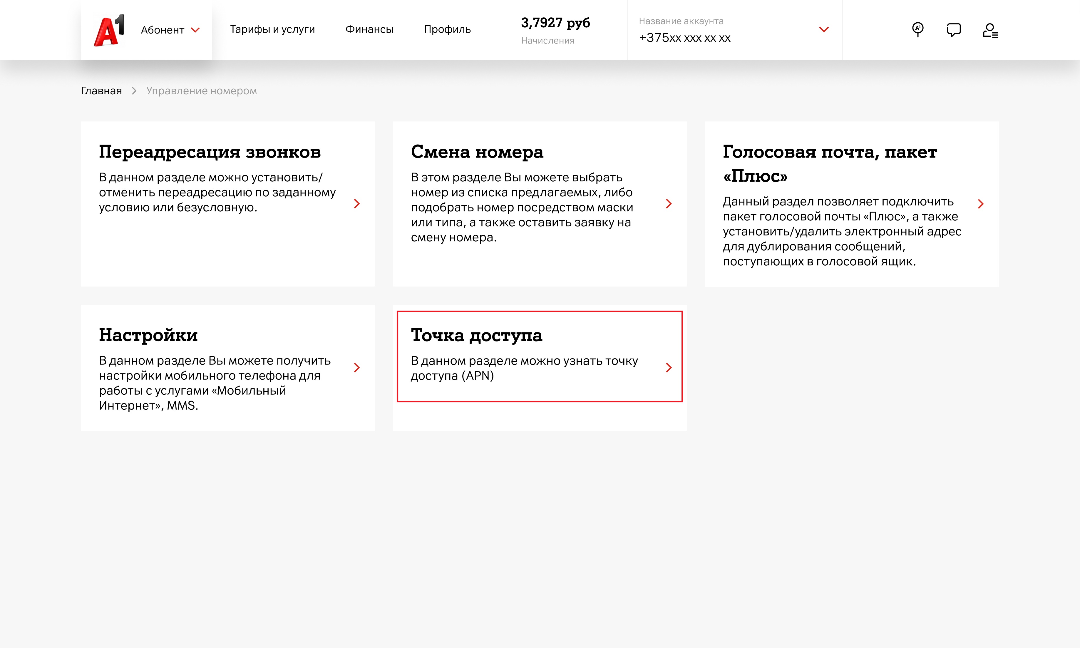 Для того, чтобы узнать точку доступа:- Перейдите в блок «Управление номером»